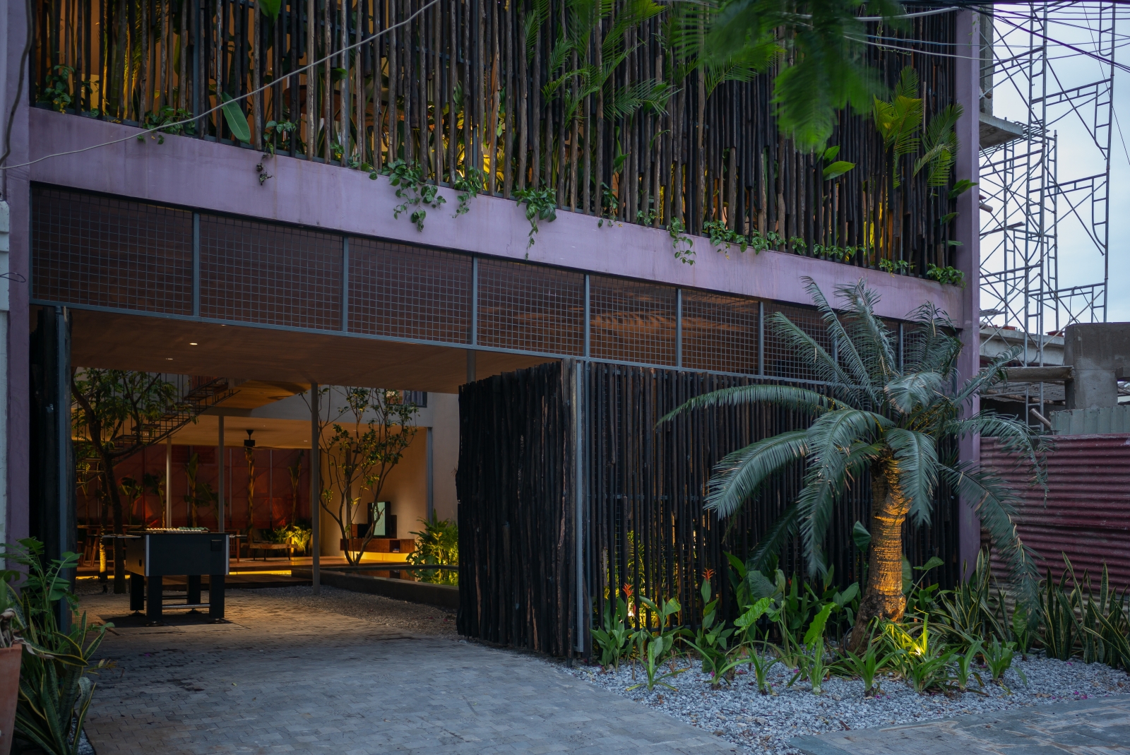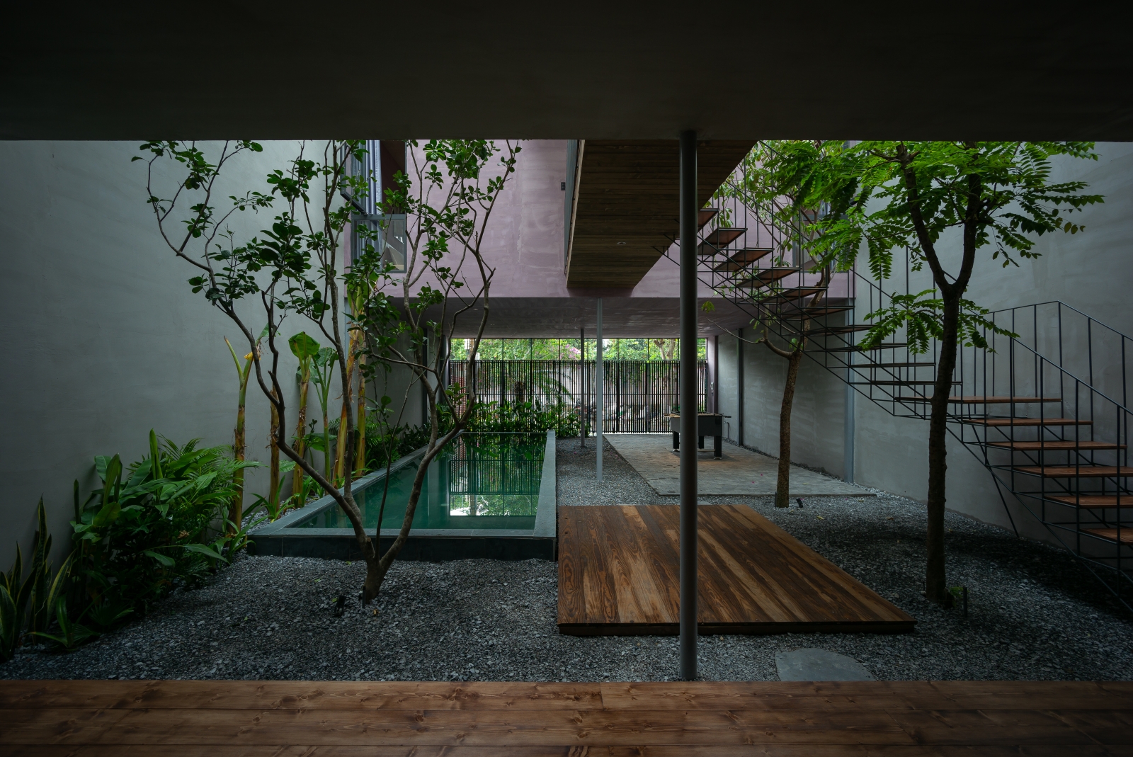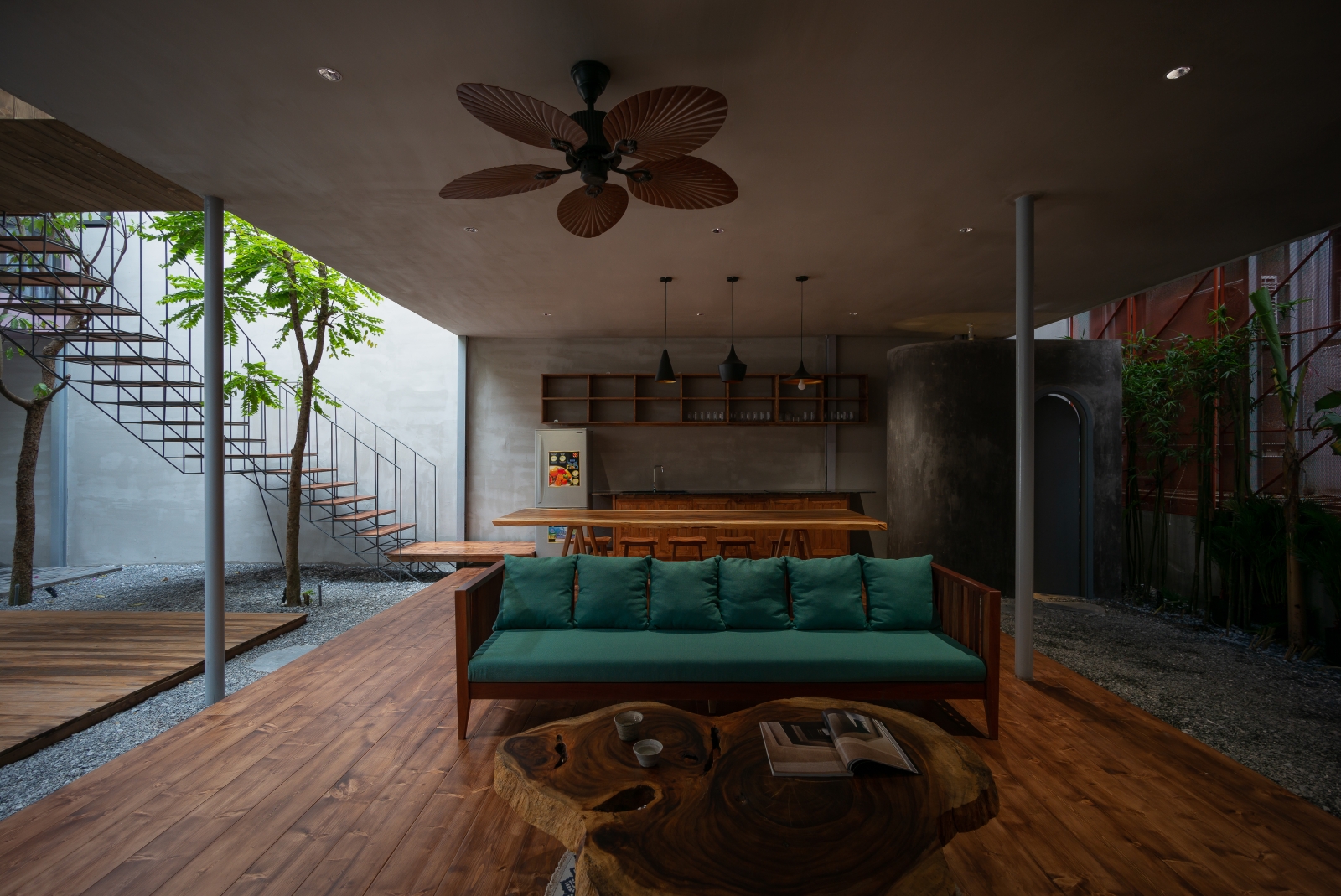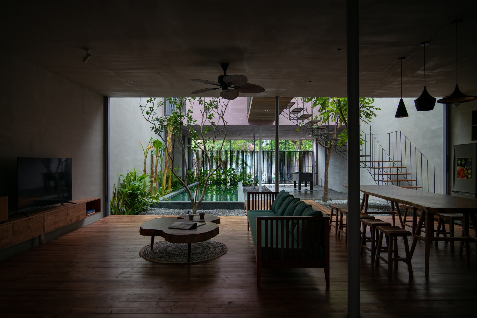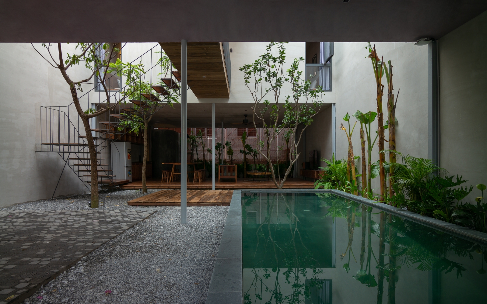 - Tầng hai gồm 4 phòng với sức tối đa là 16 khách, ở giữa là hành lang cầu và khoảng thông tầng tạo sư riêng biệt cho 4 phòng ngủ, đồng thời kết nối 4 phòng ngủ với không gian phía dưới, tạo dòng đối lưu không khí cho các không gian bên trong và bên ngoài.