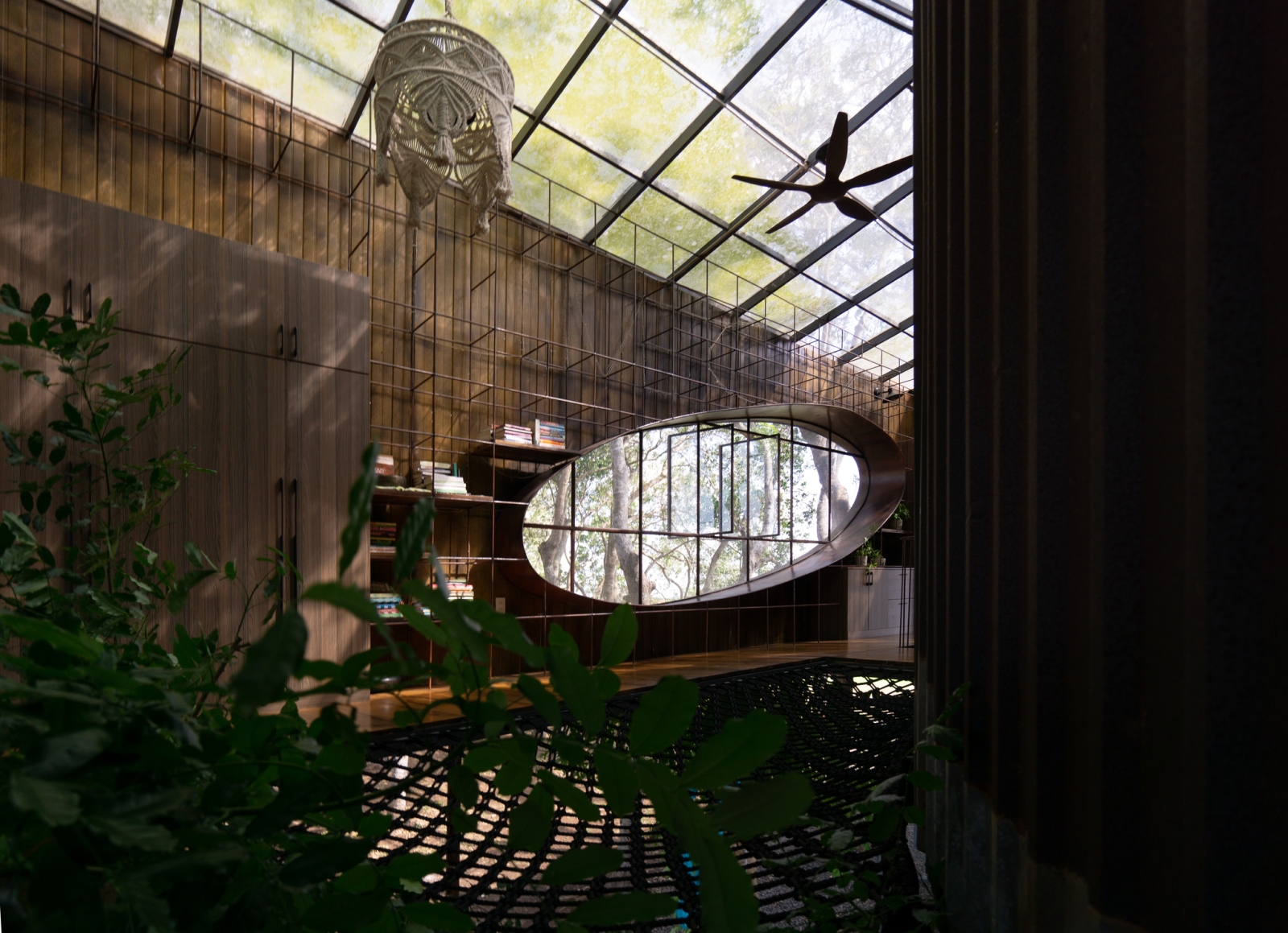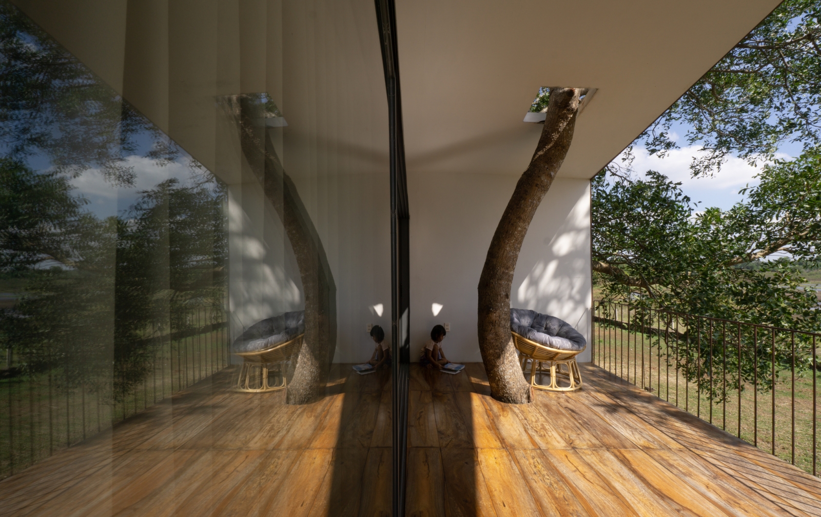 Công trình xây dựng lên như một cái nhà chòi (nhà trên cây), được đưa lên cao khỏi mặt đất và nương tựa vào những thân cây to dưới sự bao bọc của bóng mát khu rừng Xà Cừ, đón gió mát từ mặt hồ. Giúp cho công trình luôn thông thoáng và mát mẻ hơn so với bên ngoài. Từ đó mà công trình không cần dùng đến các thiết bị làm mát như điều hòa không khí, và các thiết bị hiện đại khác, mô hình chung đã giúp làm giảm thiểu chi phí và giúp bảo vệ môi trường được tốt hơn.