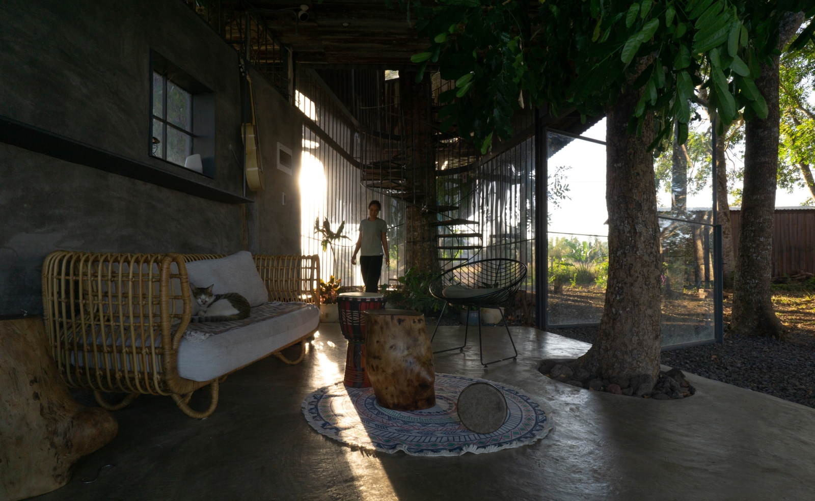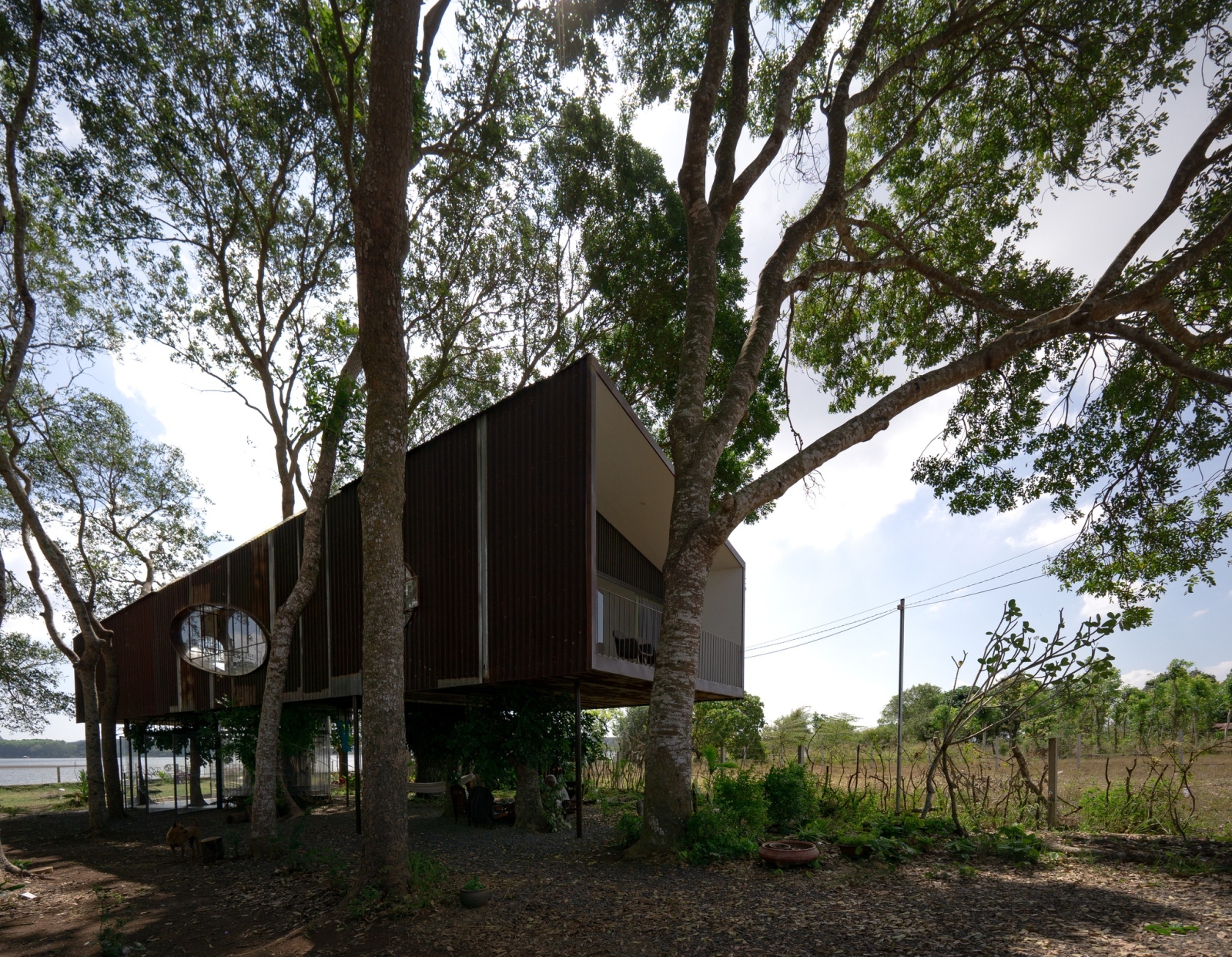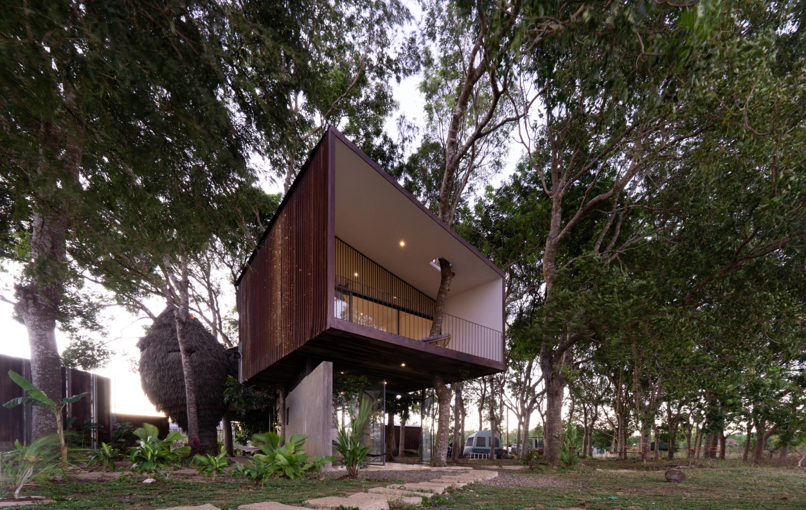 “Nhà Trên Cây” đã được hình thành dưới những tán cây của một khu rừng Xà Cừ lâu năm với mặt nước và khung cảnh tuyệt đẹp tại một vùng quê yên bình. Công trình được chúng tôi hoàn thiện phần nhiều bằng vật liệu “phế liệu” tại địa phương với mong muốn giảm thiểu chi phí cũng như tác động tới cảnh vật và thiên nhiên hiện hữu.