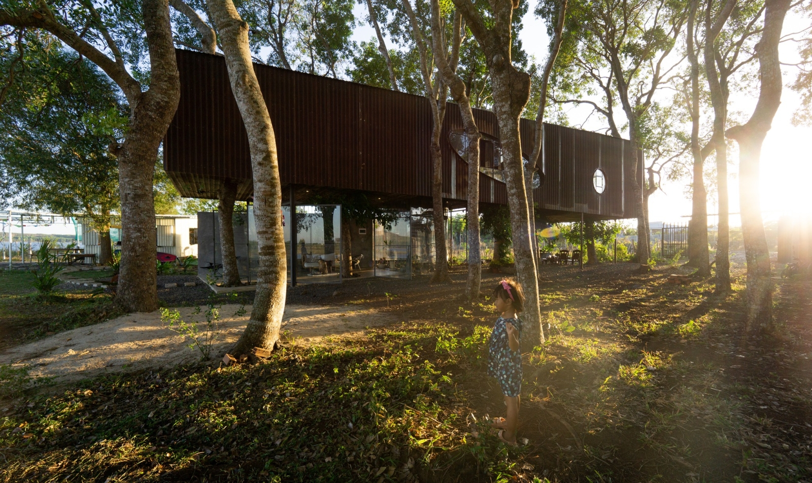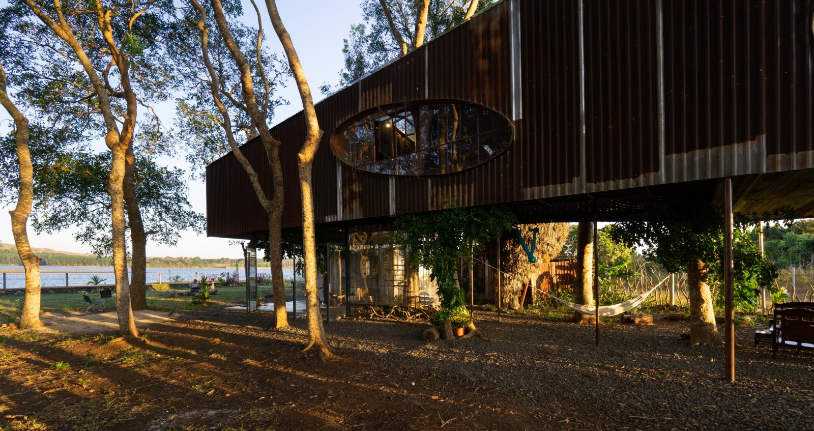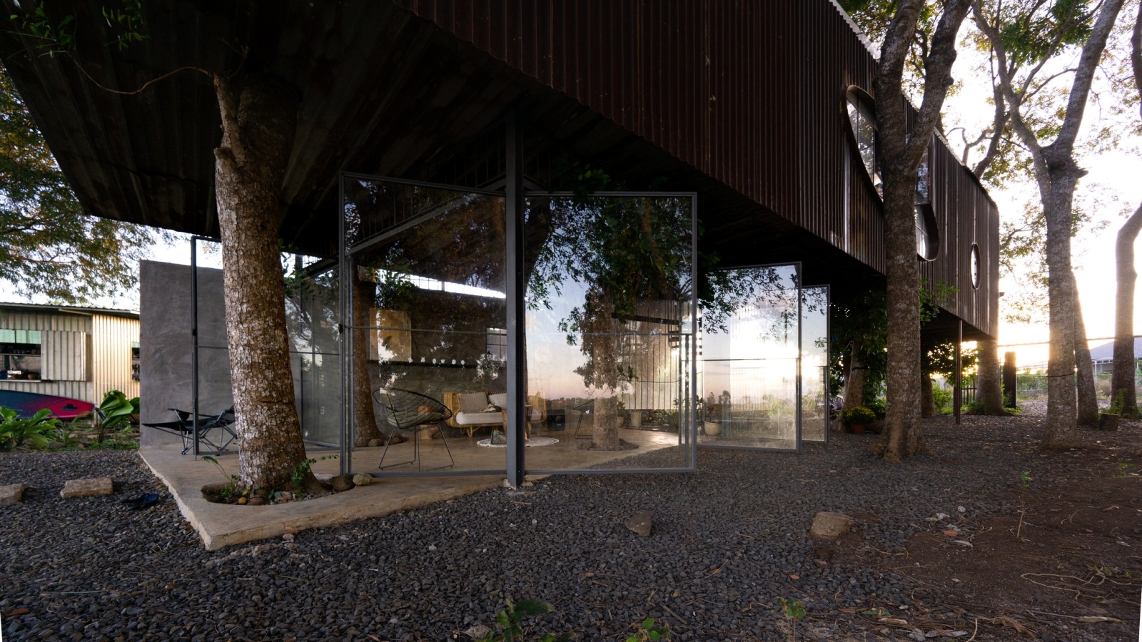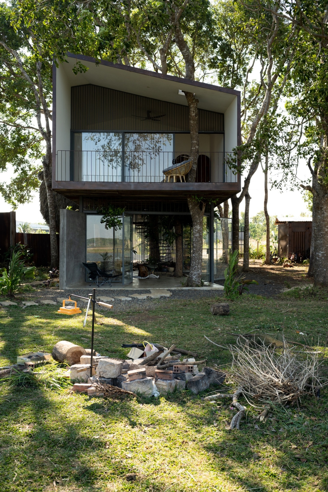 “Nhà Trên Cây” đã được hình thành dưới những tán cây của một khu rừng Xà Cừ lâu năm với mặt nước và khung cảnh tuyệt đẹp tại một vùng quê yên bình. Công trình được chúng tôi hoàn thiện phần nhiều bằng vật liệu “phế liệu” tại địa phương với mong muốn giảm thiểu chi phí cũng như tác động tới cảnh vật và thiên nhiên hiện hữu.