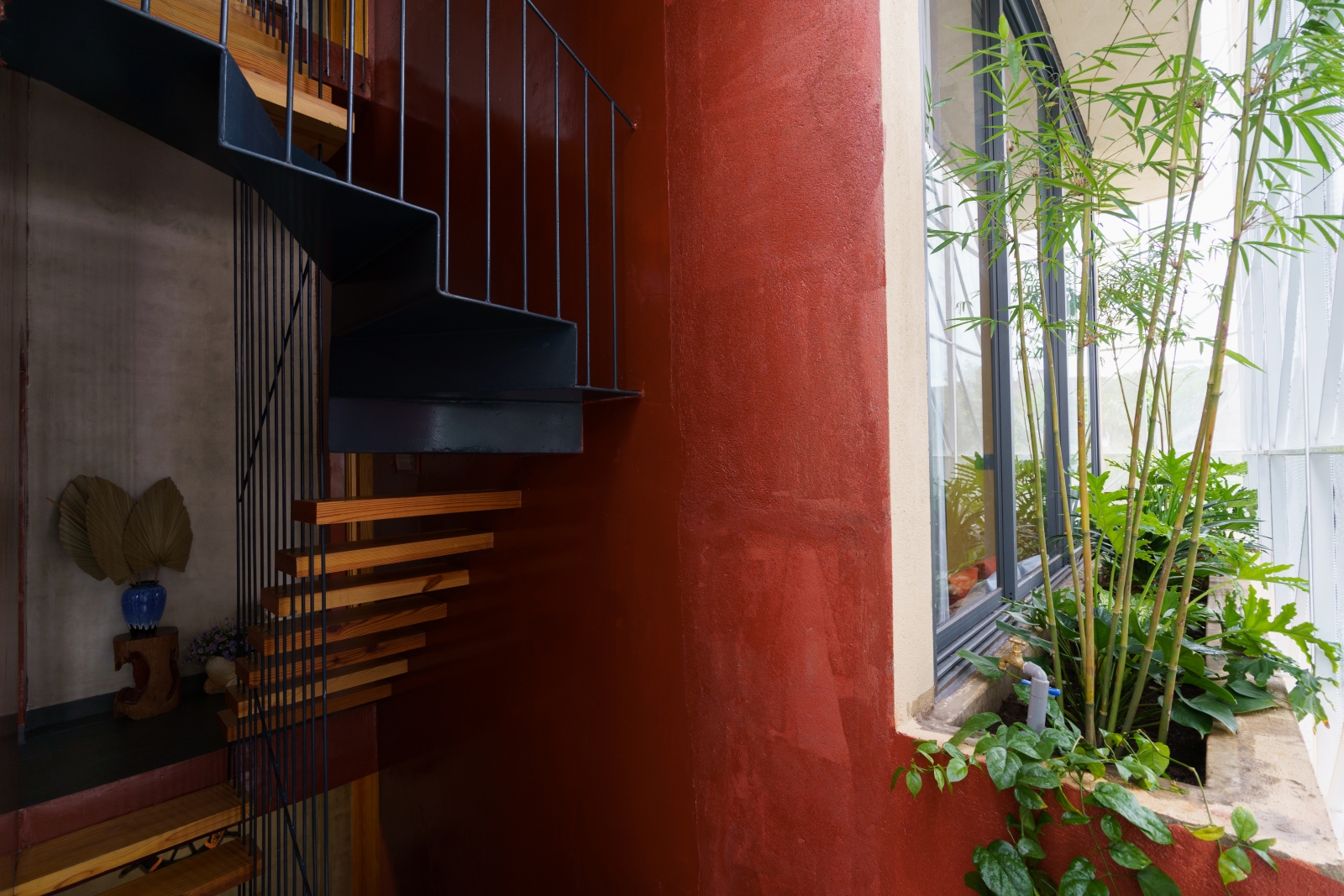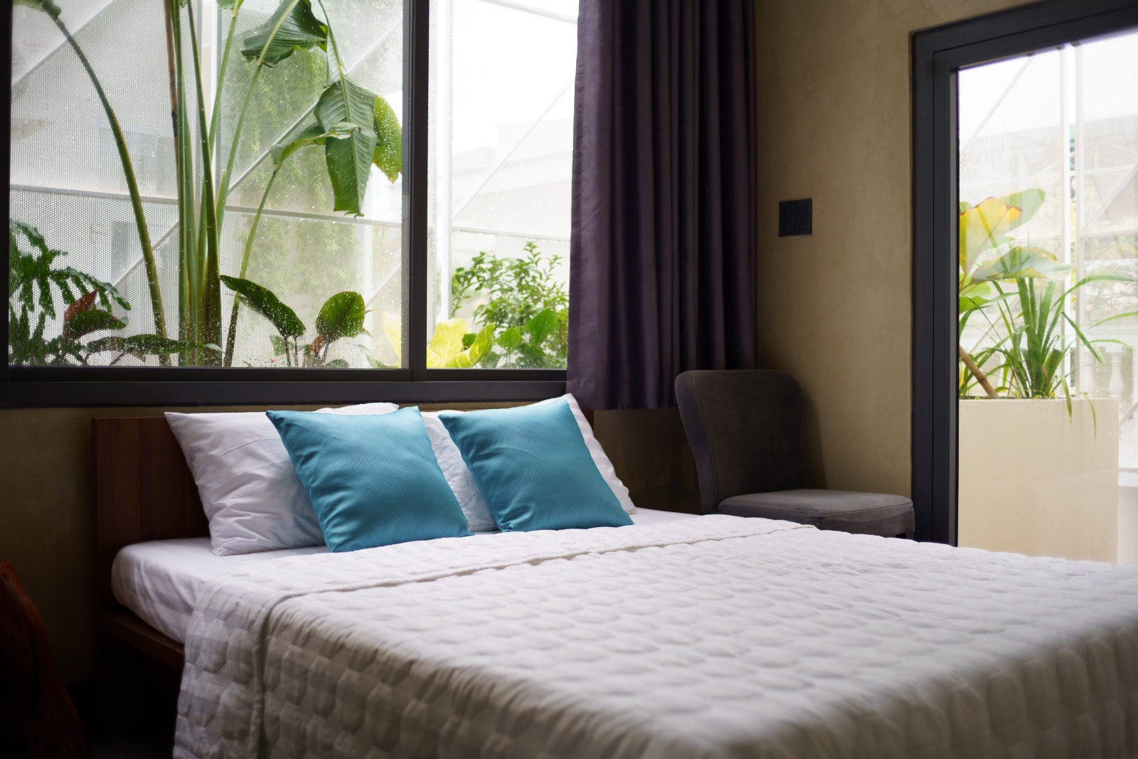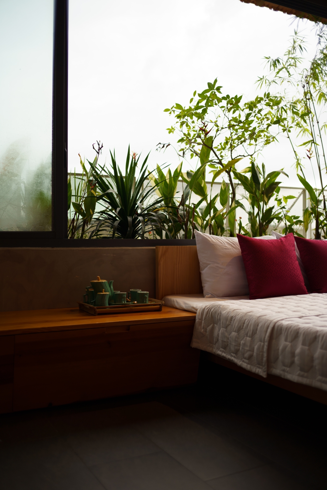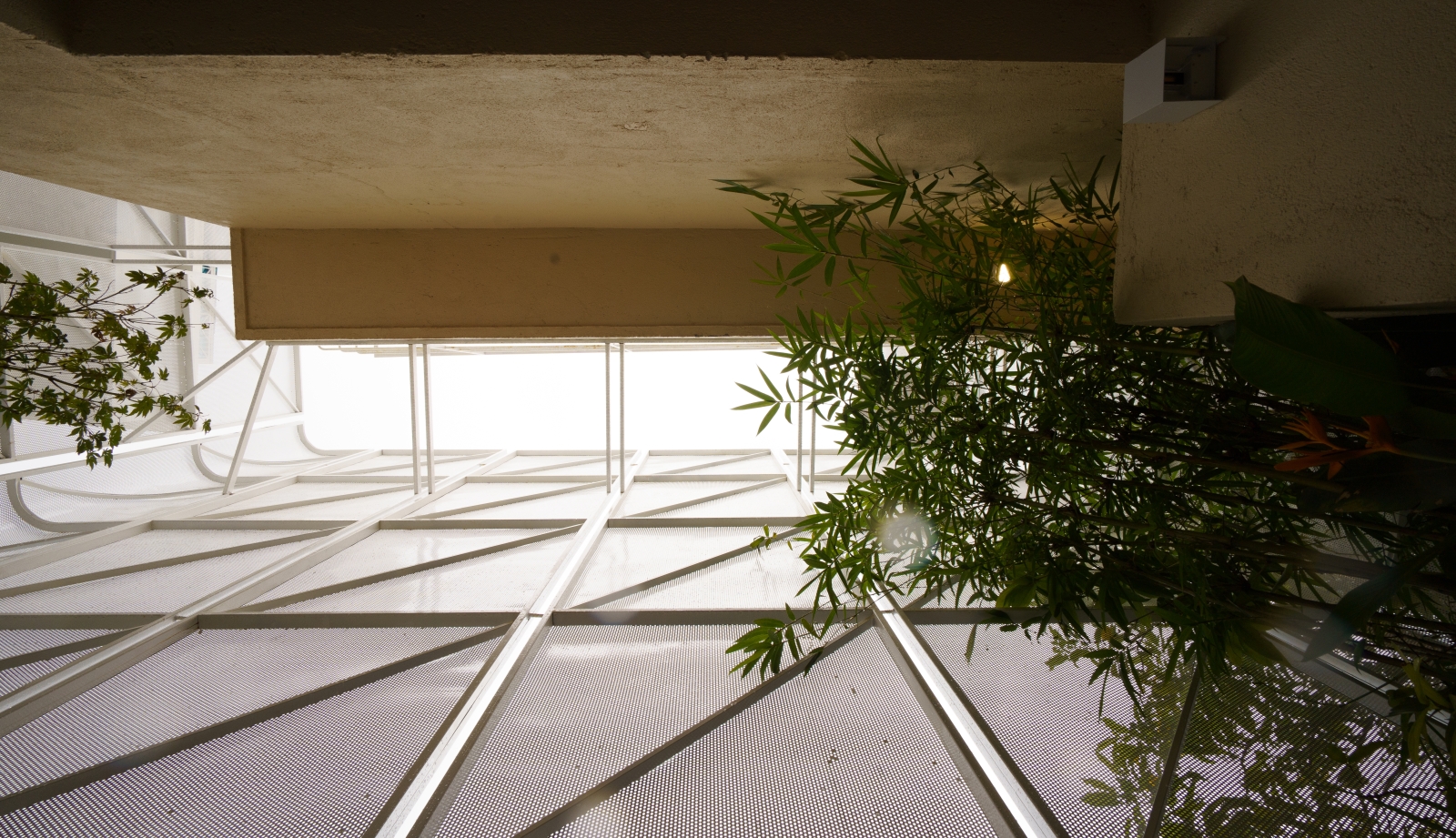 • Tầng 3: Là 02 phòng douplex lớn có ban công cây xanh mướt bao quanh, phía ngoài bao phủ bởi một lớp lưới ruồi để che bớt tầm nhìn vào bên trong căn phòng, lớp lưới sắt đã phần nào ẩn đi khung cảnh nhà cửa và những sinh hoạt thường ngày của các nhà lân cận trong khu phố. Một không gian tương phản với cuộc sống trầm lặng ẩn hiện phía sau những bức tường đúc bê tông thô mộc mạc nhưng cũng không kém vẻ sang trọng và độc đáo. Riêng người ở bên trong ngôi nhà sẽ tận hưởng vẽ đẹp của căn phòng nói riêng và căn nhà nói chung một cách trọn vẹn nhất.